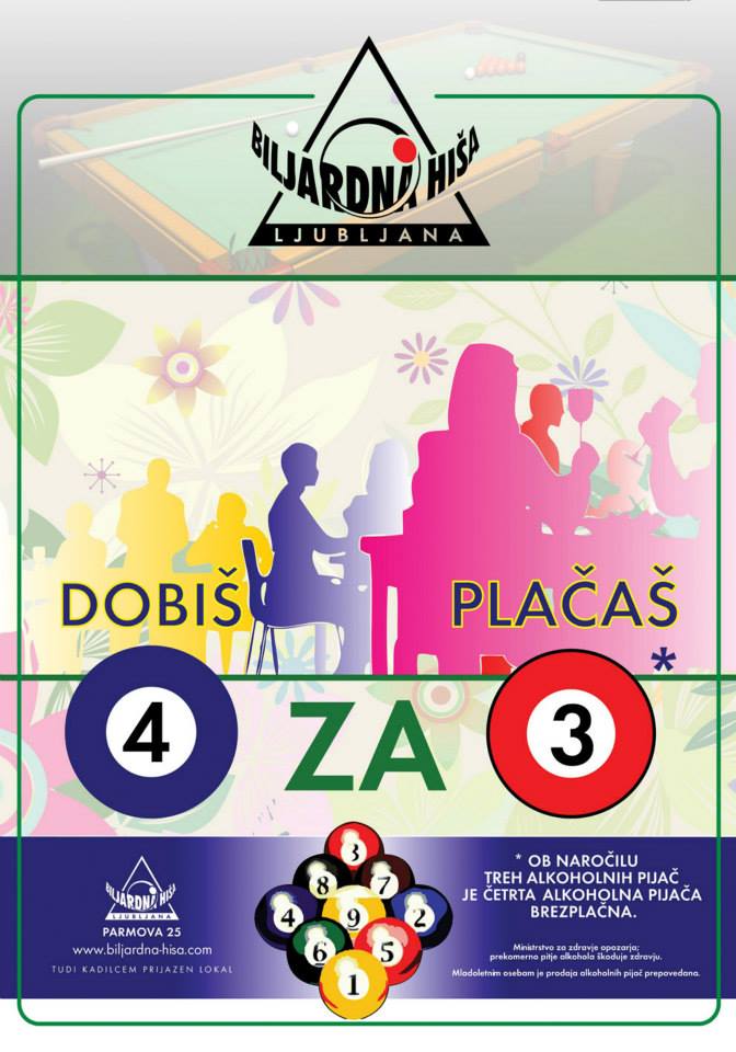 Ob naročilu treh alkoholnih pijač je četrta brezplačna, od 20h dalje.